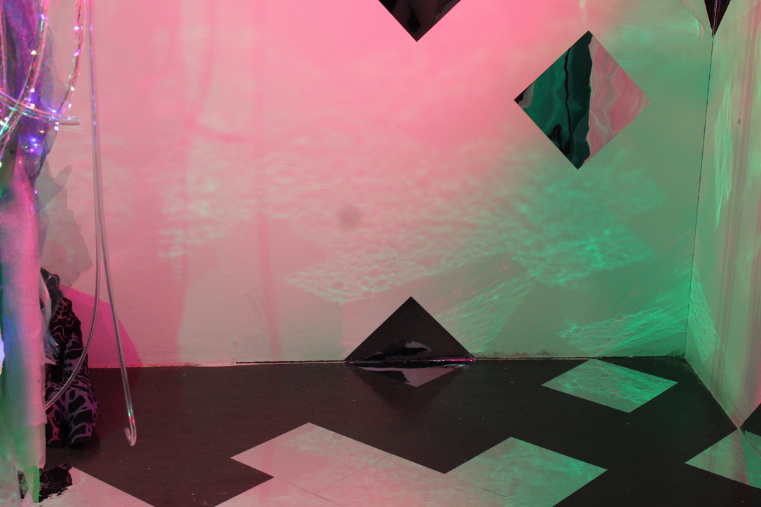is a cluster of distorted mirror tiles, reflecting the Jelly and creating a