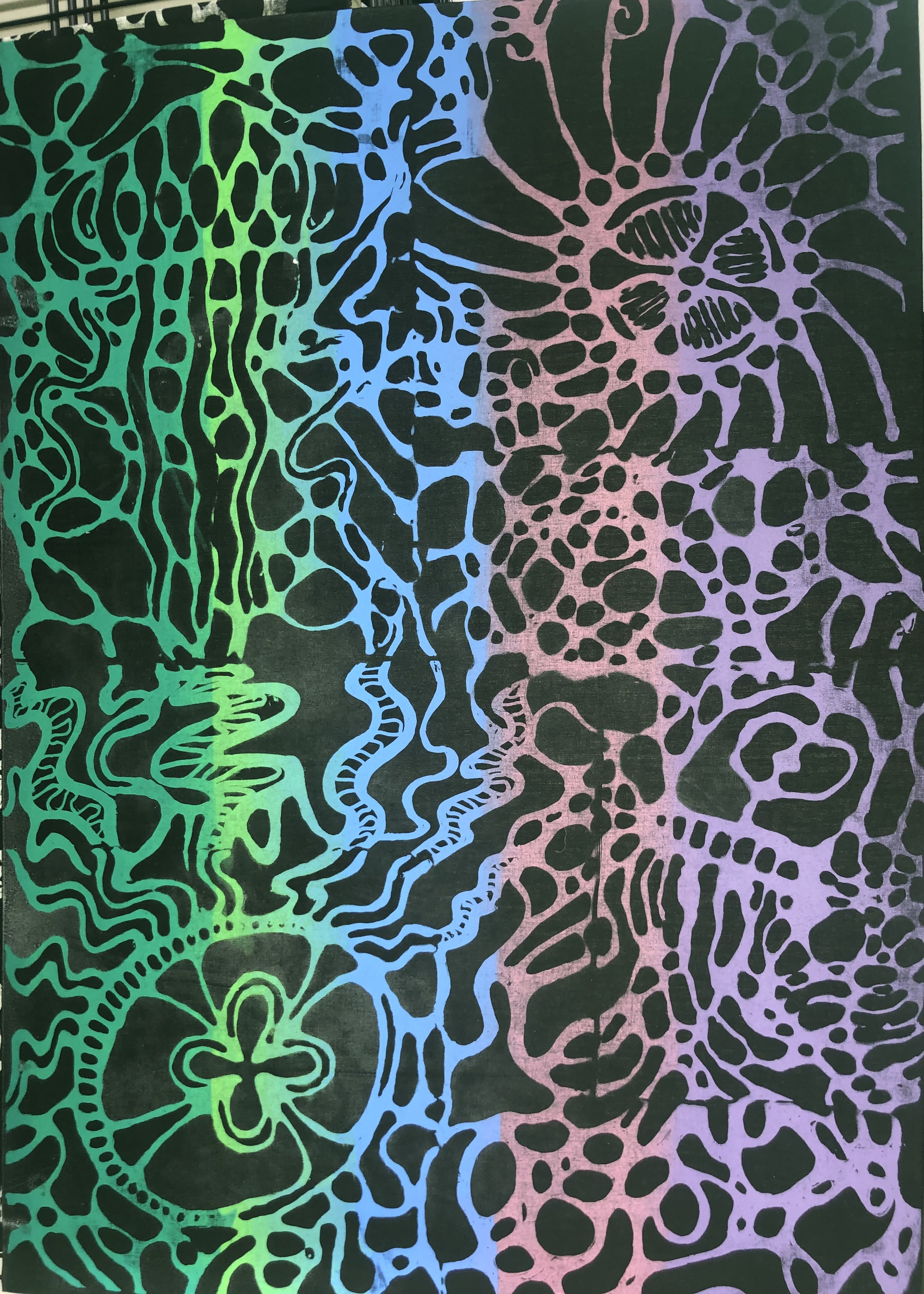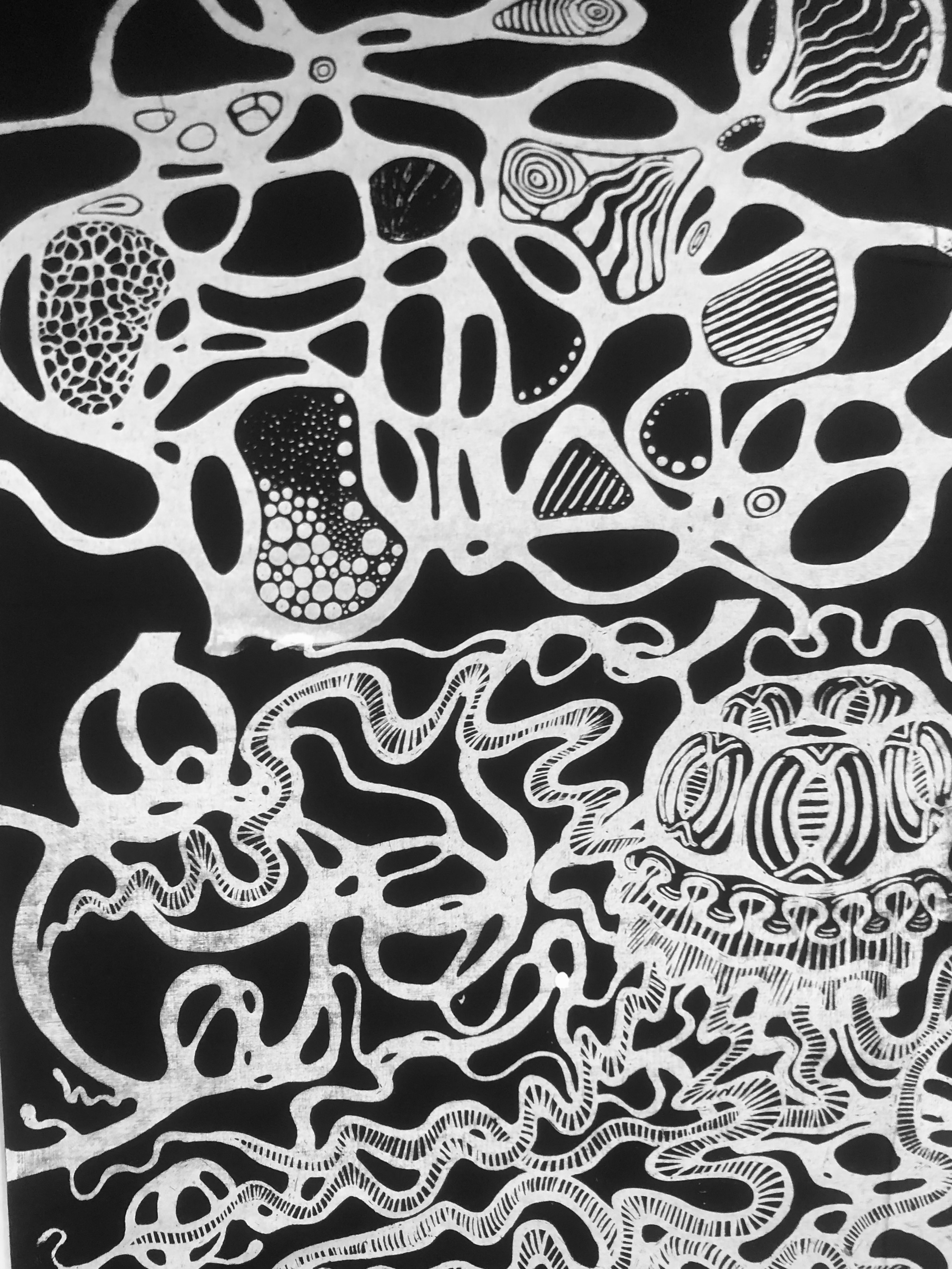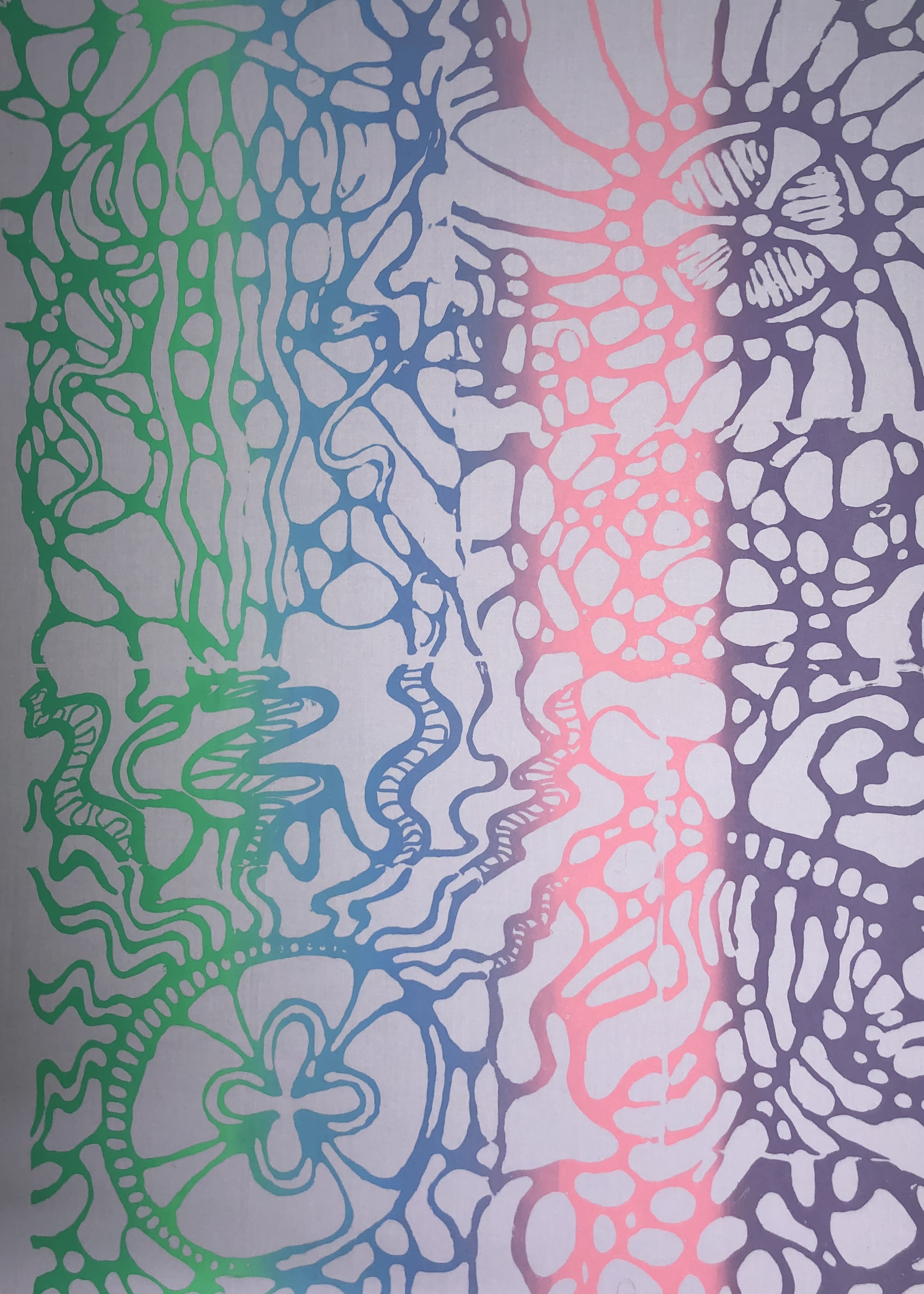 THIS OF MONO SILKSCREEN PRINTS ON 100% BLACK COTTON, WHICH I USED I MY DEGREE SHOW PIECE